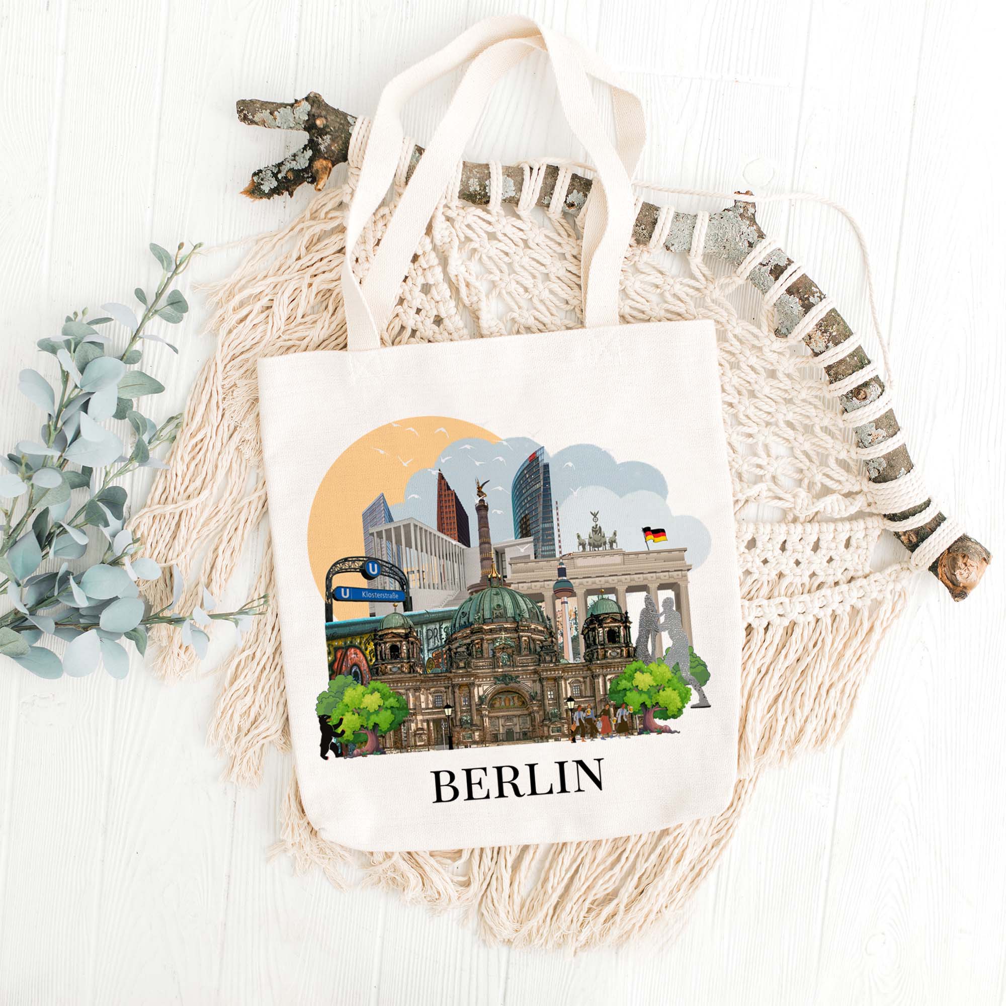 Show off your love for Berlin with this stylish and practical tote bag! Whether you’re exploring the streets of Germany’s vibrant capital or running daily errands, this tote bag is the perfect companion. Featuring a beautifully designed print inspired by Berlin’s iconic landmarks—such as the Brandenburg Gate, TV Tower, and Berlin Wall—this tote is a must-have for travellers, city lovers, and wanderlust enthusiasts.