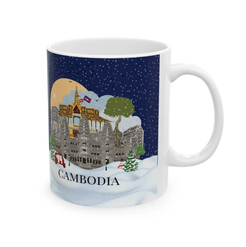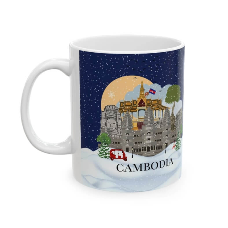 This Cambodia Christmas themed mug is the perfect gift for yourself, your loved ones or for that coffee or tea lover in your life! This cute illustrated mug is decorated with all the major sites and places to visit in and around the country making it an awesome souvenir and just what you need to remember (or inspire) your travels by!