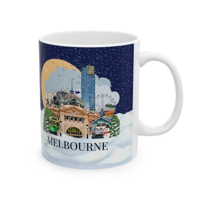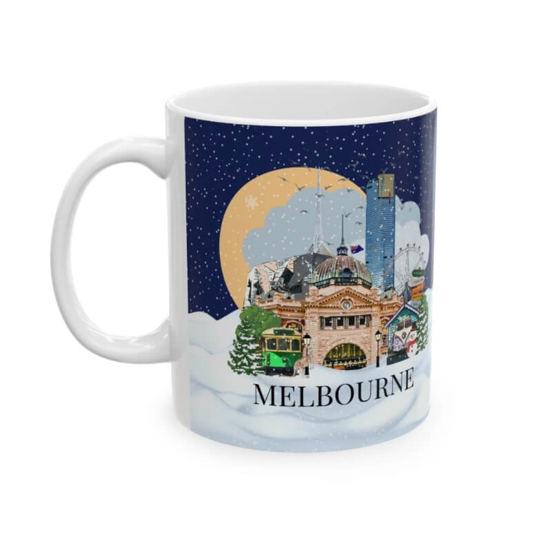 This Melbourne Christmas themed mug is the perfect gift for yourself, your loved ones or for that coffee or tea lover in your life! This cute illustrated mug is decorated with all the major sites and places to visit in and around the city making it an awesome gift or souvenir and just what you need to remember (or inspire) your travels by!