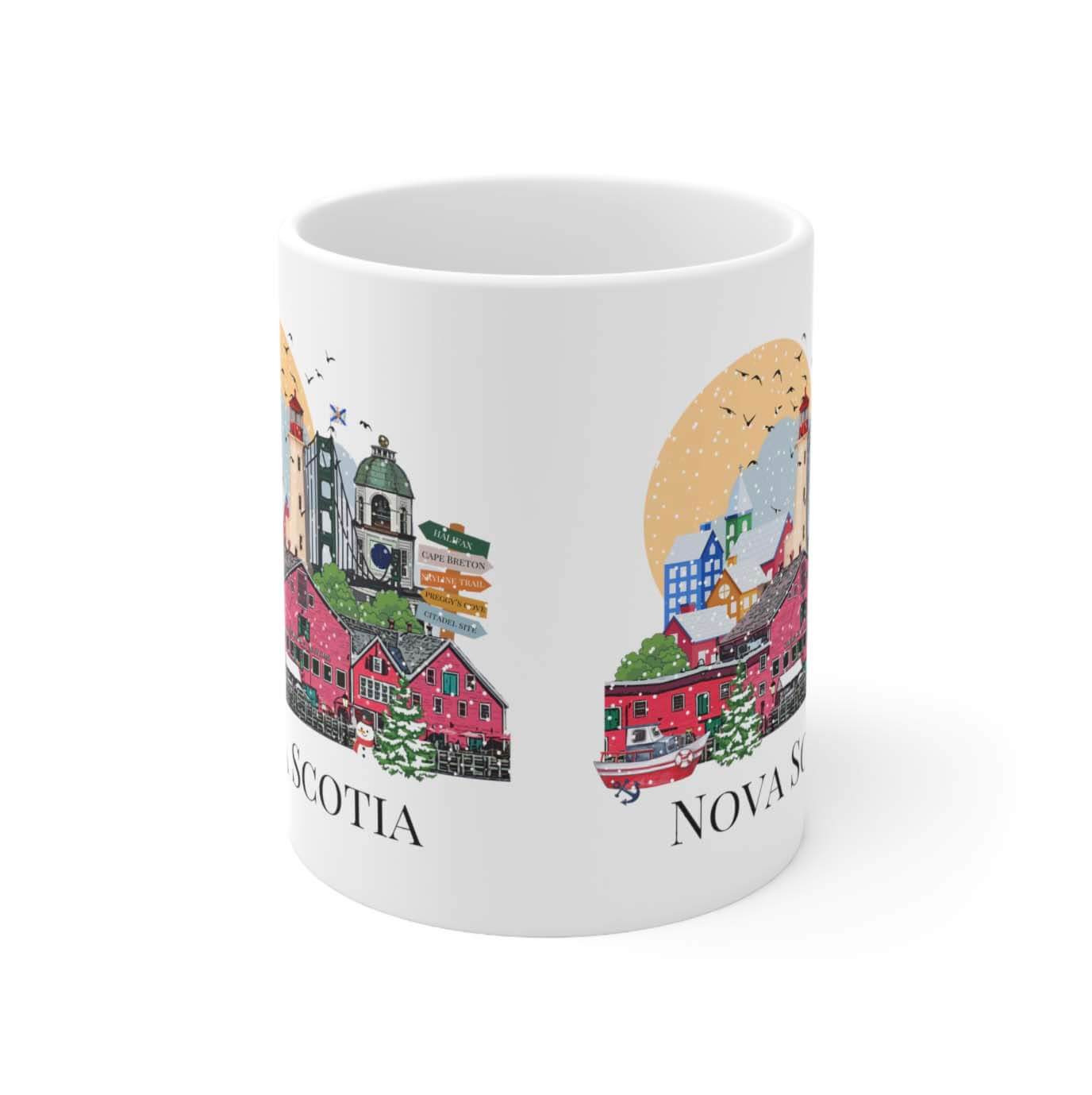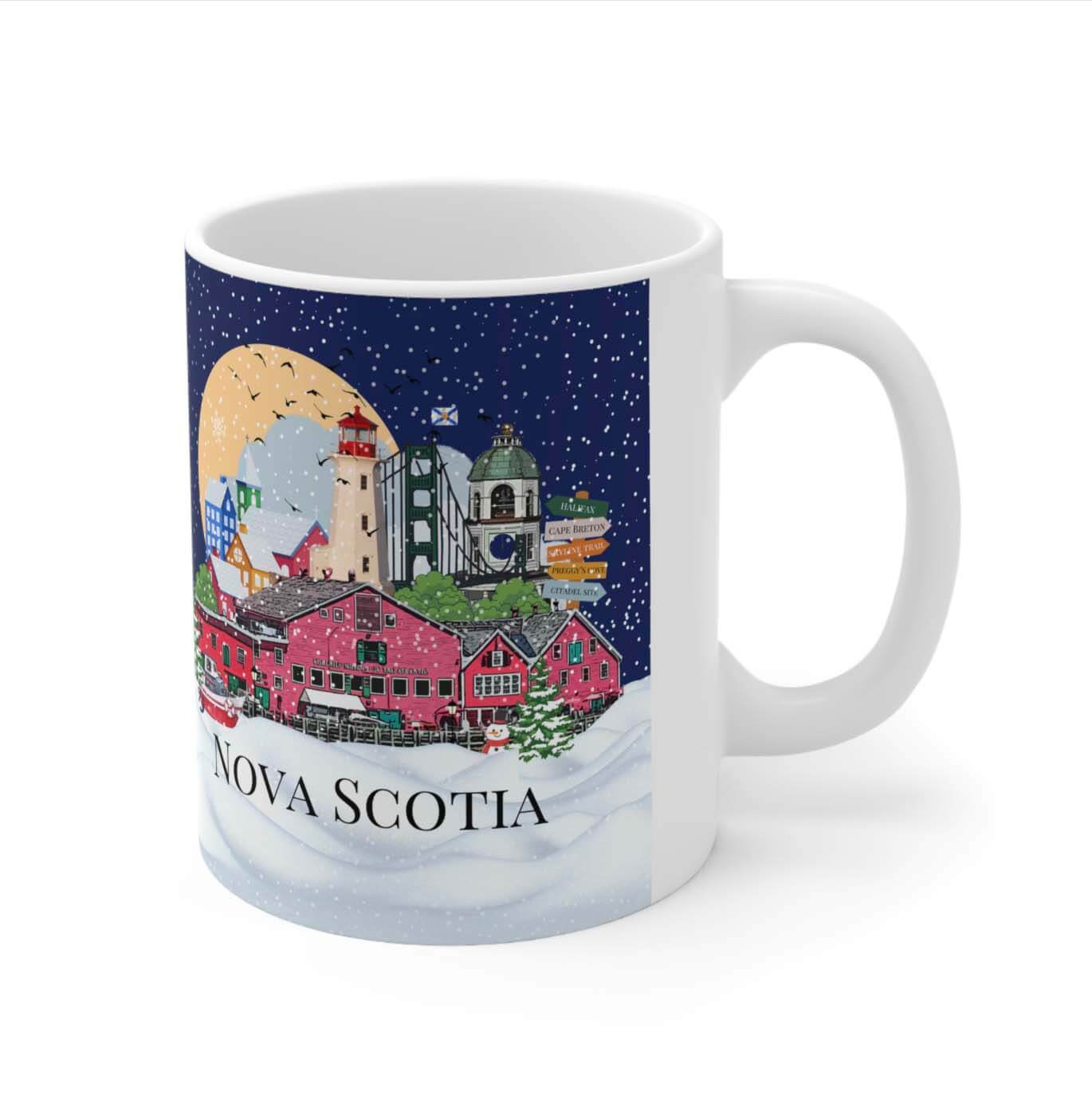 This Nova Scotia Christmas themed mug is the perfect gift for yourself, your loved ones or for that coffee or tea lover in your life! This cute illustrated mug is decorated with all the major sites and places to visit in the province making it an awesome souvenir and just what you need to remember (or inspire) your travels by!