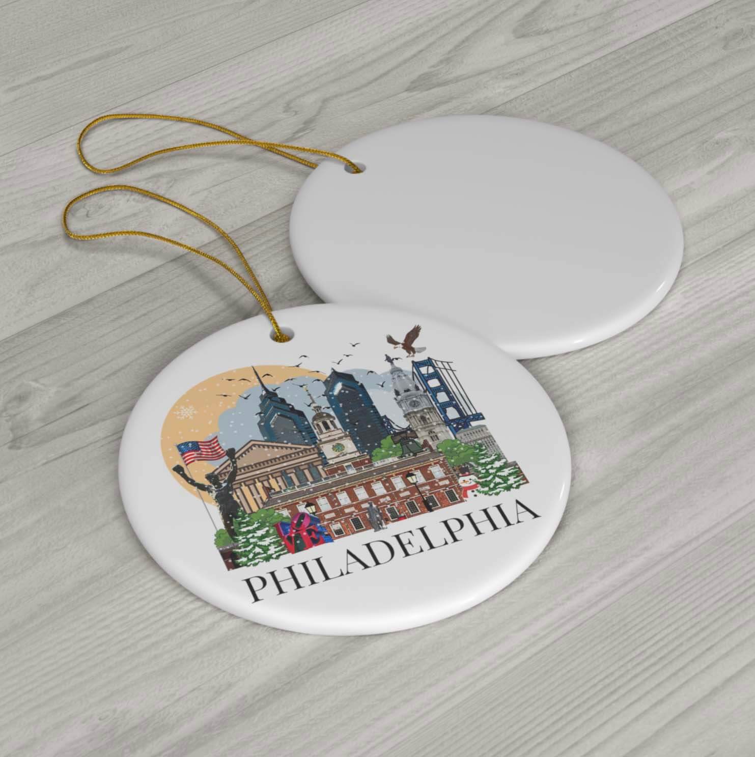 These custom-made holiday travel inspired ornaments feature the places you love from all around the world. This makes for a lovely holiday heirloom to use each year and it will make a great addition to your Christmas tree or gift it to a loved one!