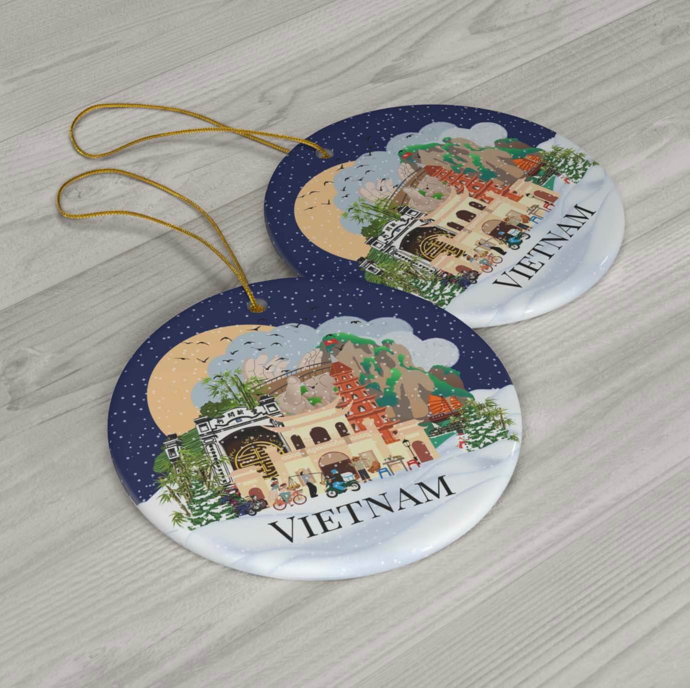 These custom-made holiday travel inspired ornaments feature the places you love from all around the world. This makes for a lovely holiday heirloom to use each year and it will make a great addition to your Christmas tree or gift it to a loved one!