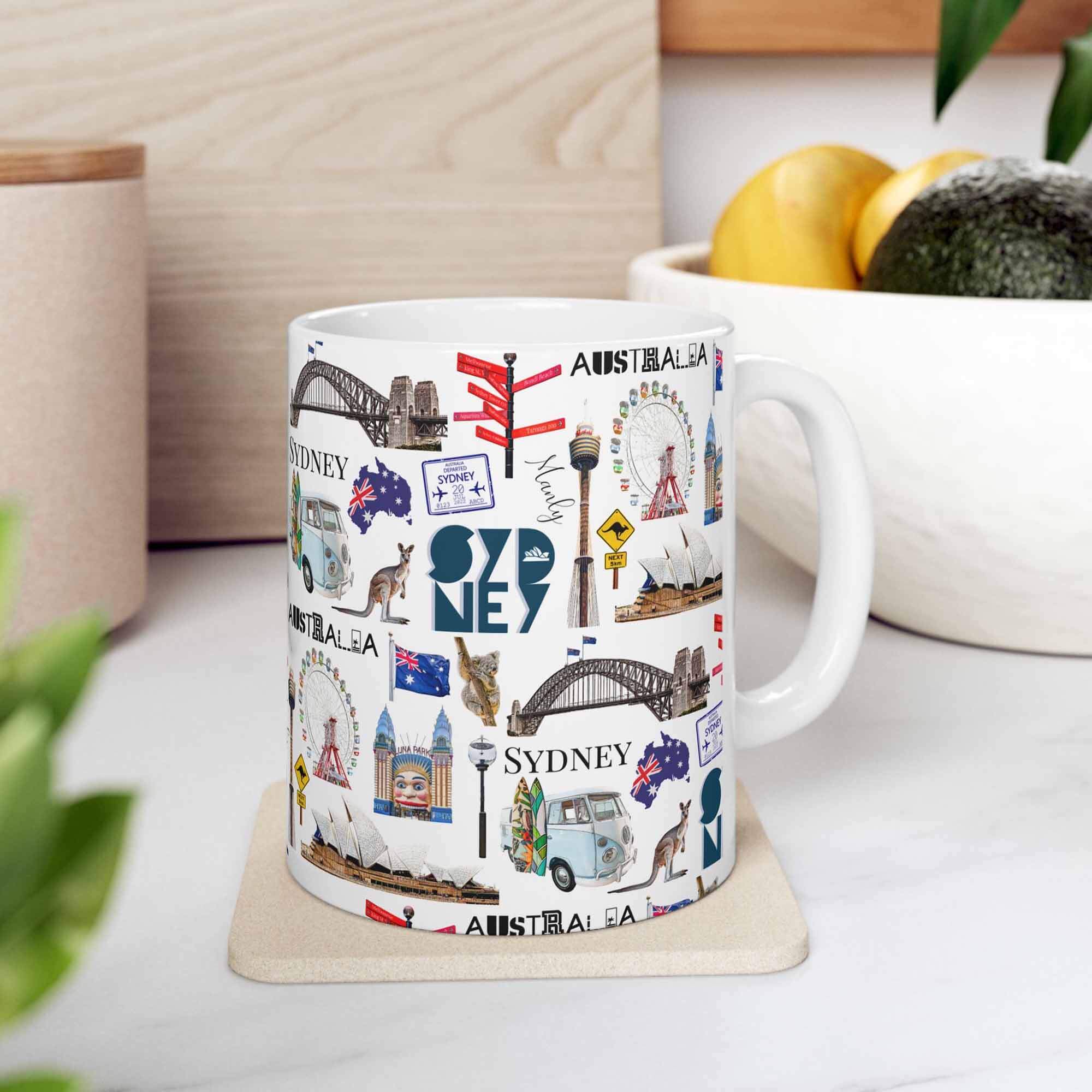 This colourful Sydney inspired mug is the perfect gift for yourself or for that coffee or tea lover in your life! This cute illustrated mug is decorated with some of the most iconic sites and places to visit in Australia making it an awesome souvenir and just what you need to remember (or inspire) your travels by!