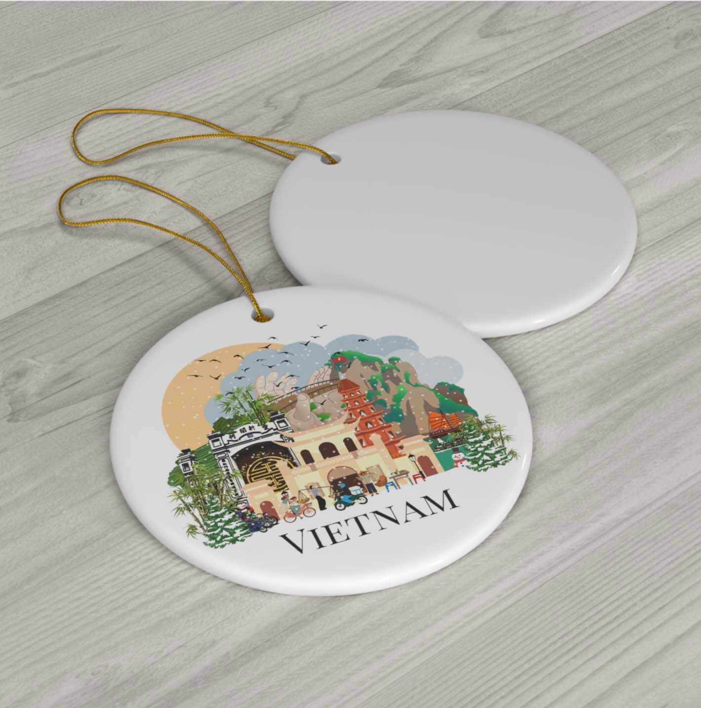 These custom-made holiday travel inspired ornaments feature the places you love from all around the world. This makes for a lovely holiday heirloom to use each year and it will make a great addition to your Christmas tree or gift it to a loved one!